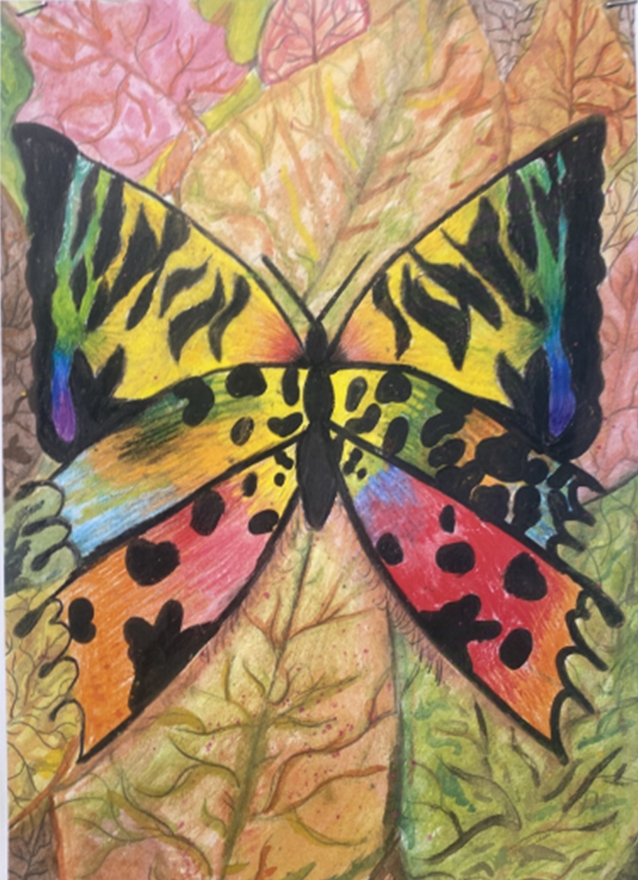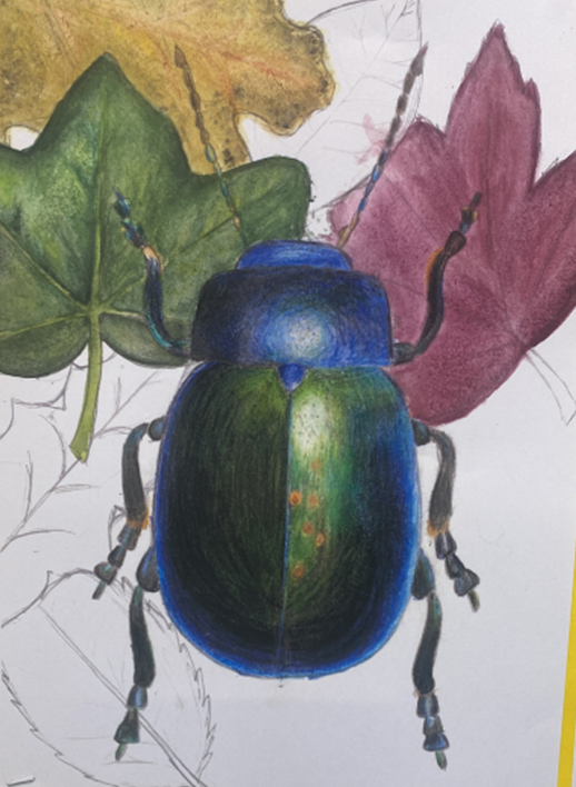 Year 7 students were studying insects last term. They have been looking at shape/symmetry and perfecting coloured pencil blending as well as watercolour techniques .