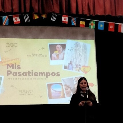 Hetty and Sylvia spent a few lunchtimes practising and honing their presentations, in French and Spanish respectively (picture below), while Arthur came after school to work on his speech which combined French with a host of other languages he’s learning! It was lovely to support these committed linguists!