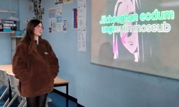 Lucy and Layla practised singing in Korean (picture below) and Kitty worked on a choreography she performed on a French song sung and played live by other students from Pilton – a real example of inter-school cooperation driven by an interest in foreign languages.