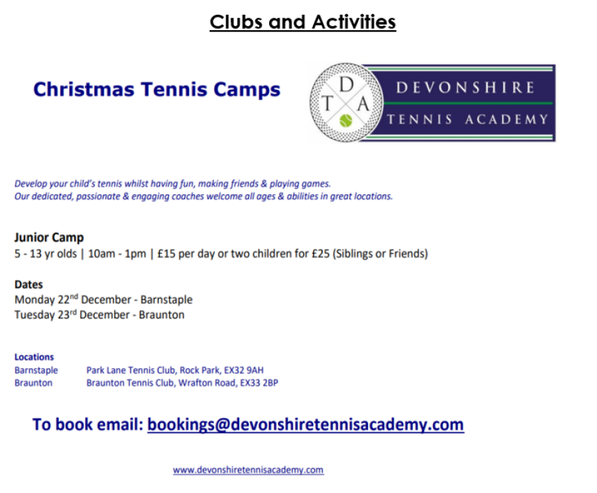 No Netball Club Thursday 11th December due to Year 11 Parents’ Evening.