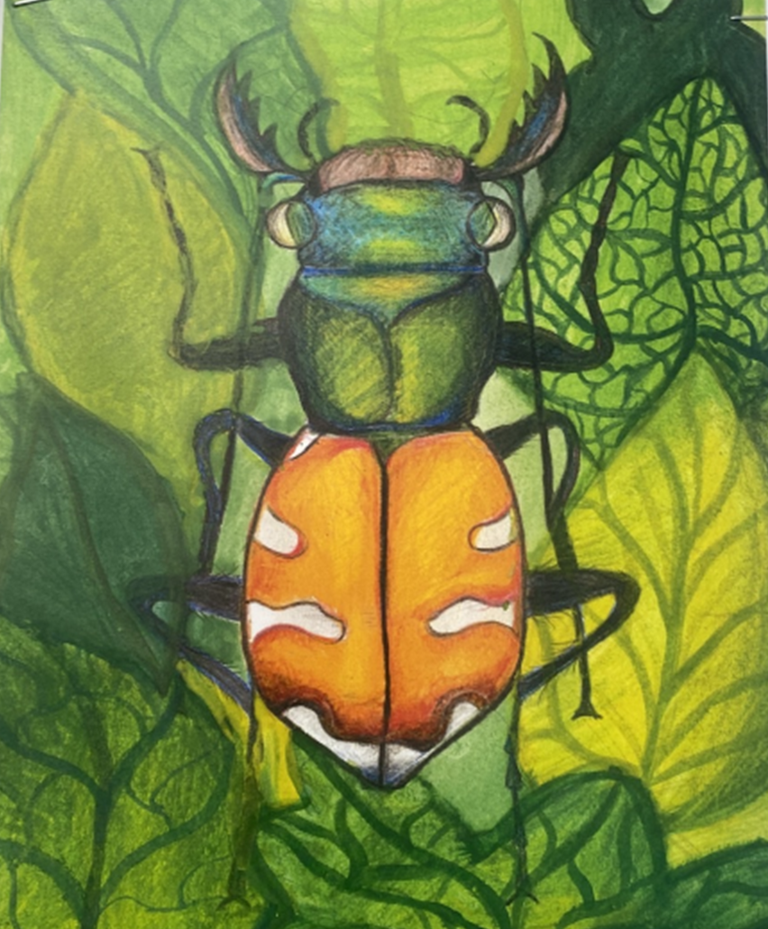 Year 7 students were studying insects last term. They have been looking at shape/symmetry and perfecting coloured pencil blending as well as watercolour techniques .