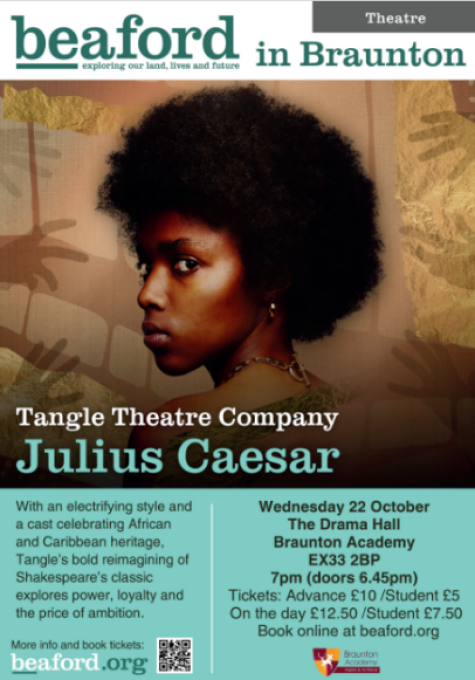 Braunton Academy in conjunction with Beaford Arts will host Tangle Theatre Company's thrilling physical theatre reimagining of Shakespeare's timeless tragedy in the Drama Hall on Wednesday 22nd October 2025, doors open at 6.45pm.