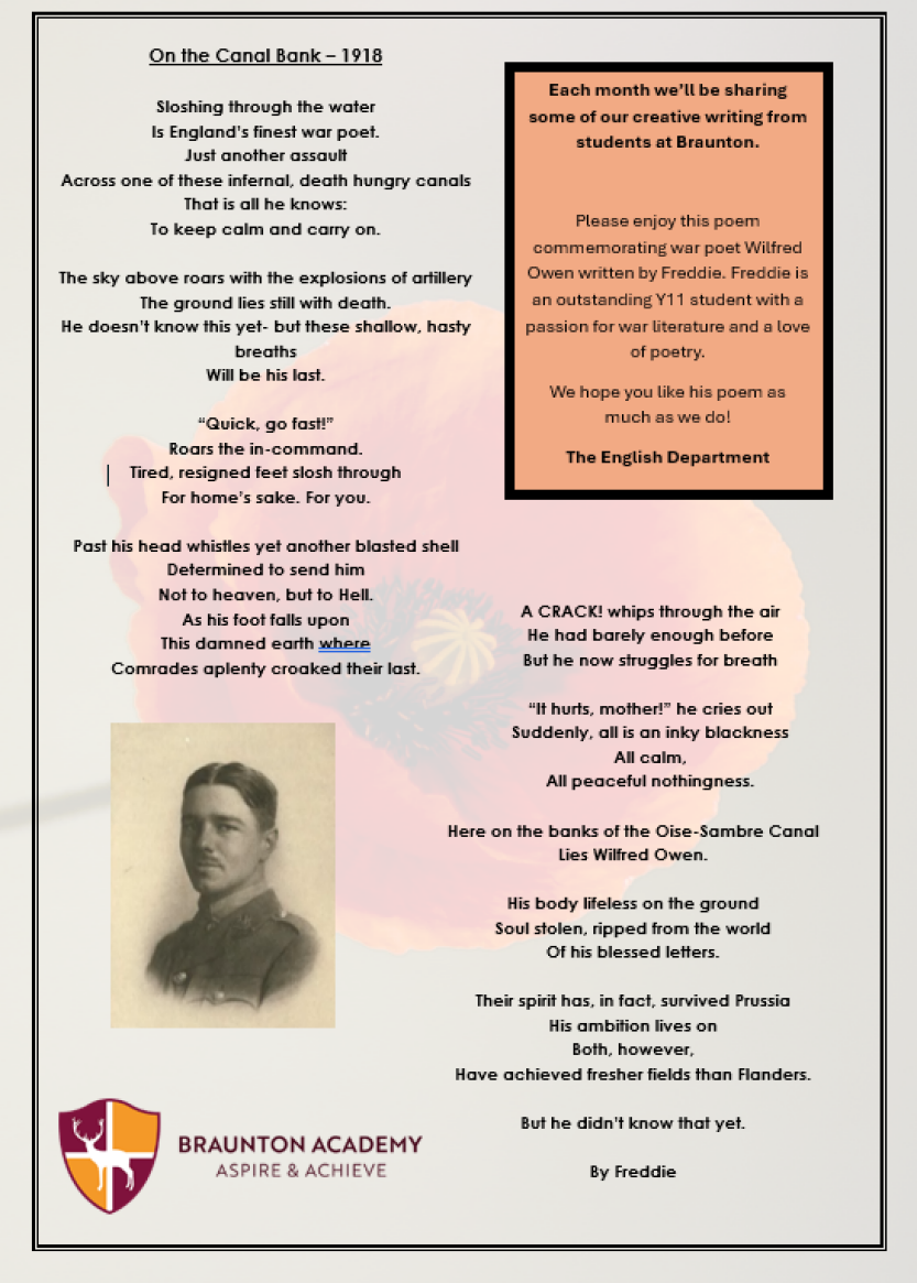 Celebrating Creative Excellence: Freddie’s Poem Honours Wilfred Owen