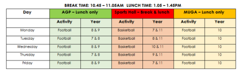 Students playing Football on the AGP at lunchtimes must wear their shin pads with trainers or football boots. They do not need to wear PE kit.